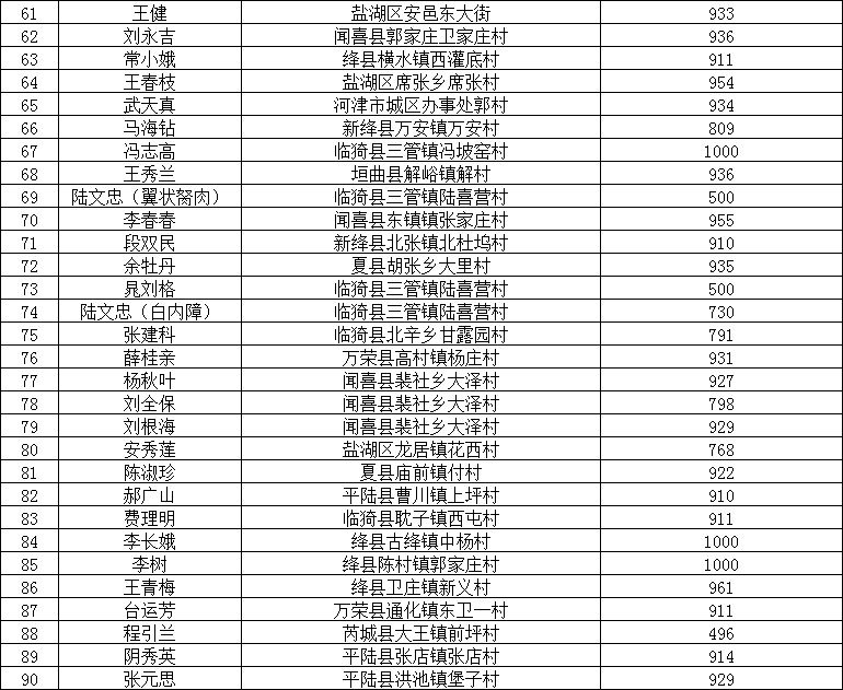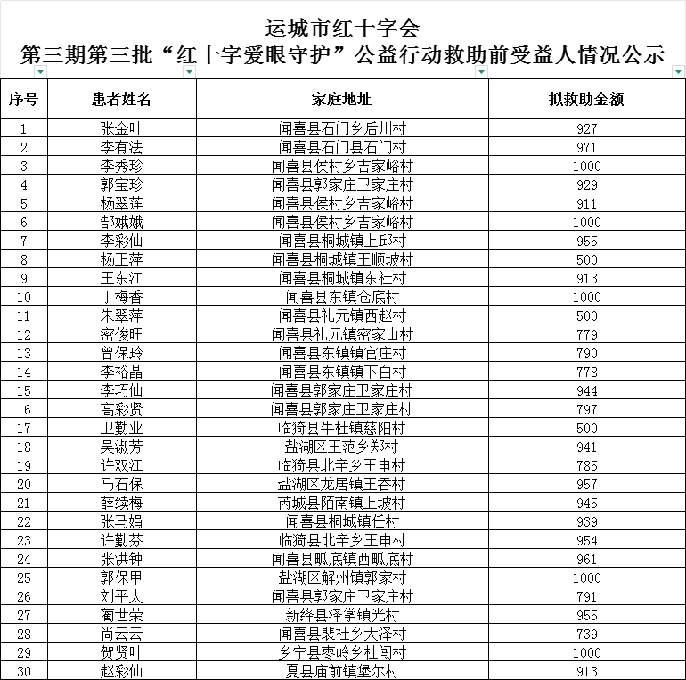 运城市红十字会第三期第三批“红十字爱眼守护”公益行动救助前受益人情况公示